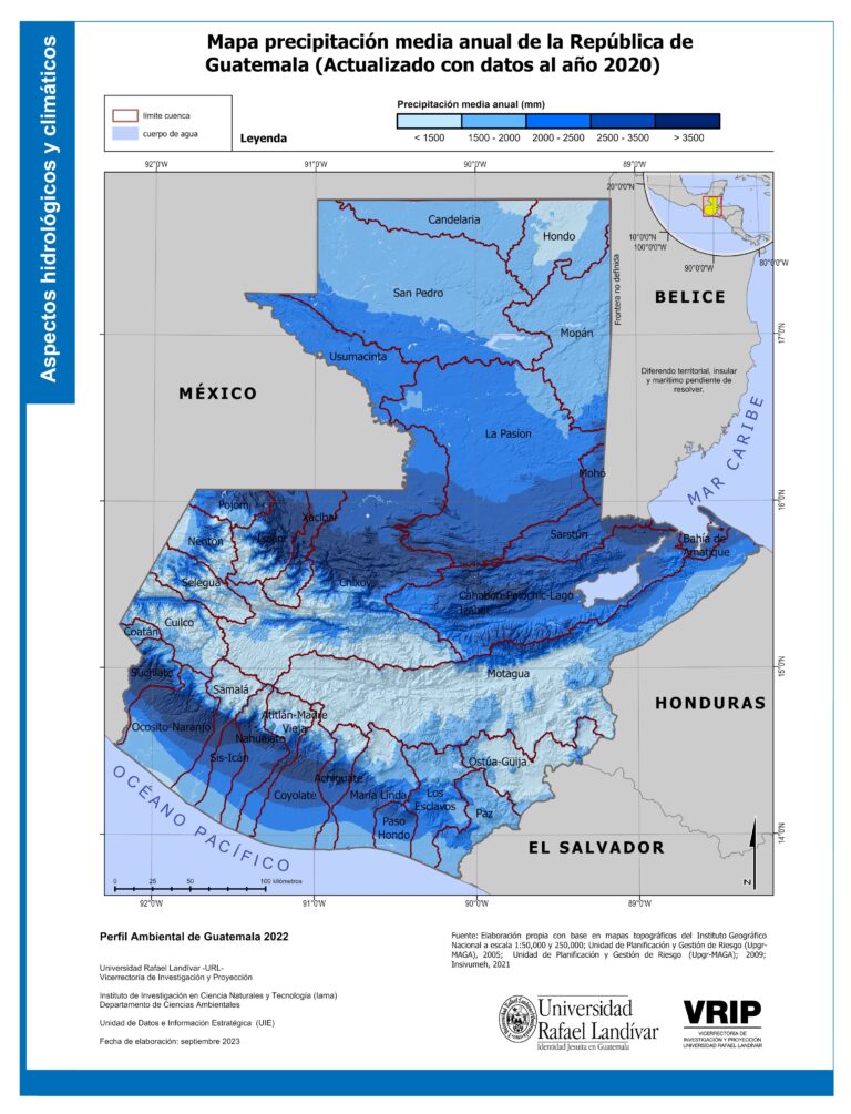 Este mapa fue elaborado por la Universidad Rafael Landívar en 2023 con datos recopilados por el Instituto Geográfico Nacional de…