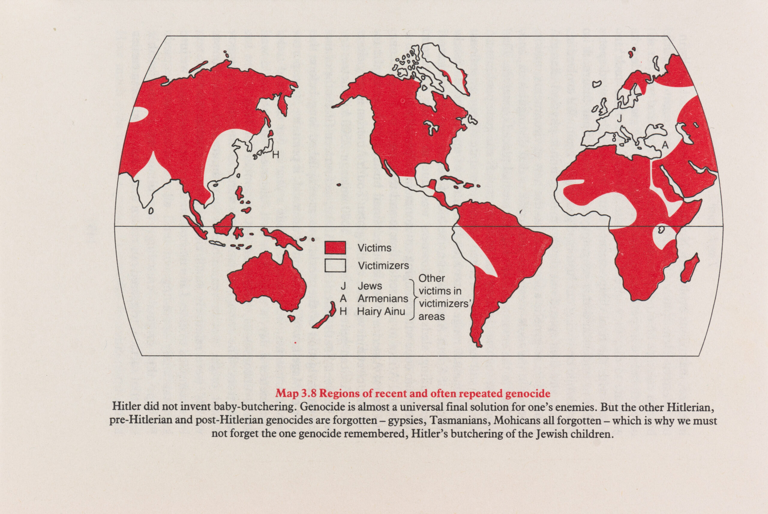 Este mapa, publicado por el geógrafo estadounidense William Bunge en 1988, muestra las regiones donde han acontecido genocidios en la…